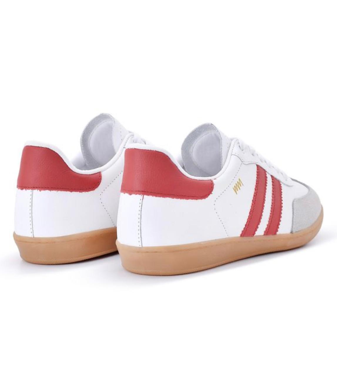Tênis em couro e palmilha calcanheira gel
